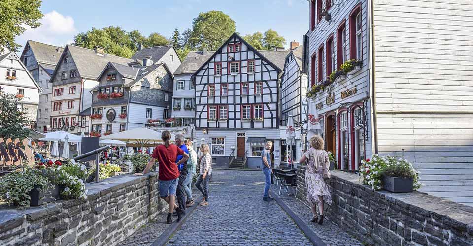 Monschau biedt een doolhof aan kronkelige straatjes en binnenhofjes, eeuwenoude vakwerkbouw met tuitjes en trapgeveltjes. >> Ontdek Monschau